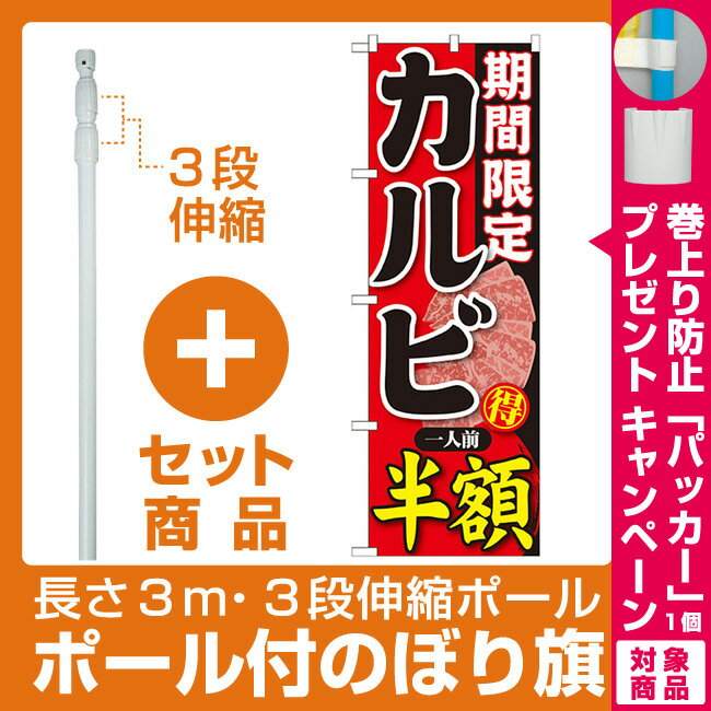 【プレゼント付】【セット商品】3m・3段伸縮のぼりポール(竿)付 のぼり旗 期間限定 カルビ 内容:一人前半額 (SNB-220)