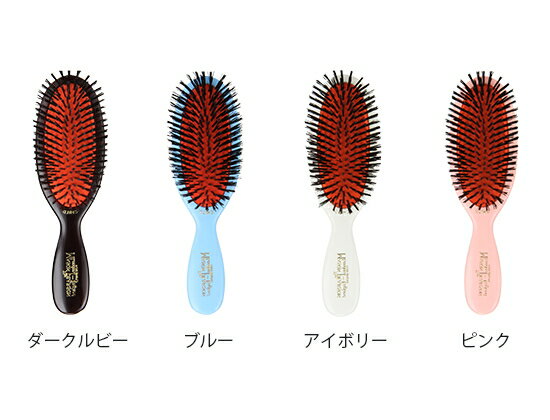 ●カラー:ダークルビー、ブルー、アイボリー、ピンク●素材:酢酸セルロース,天然ゴム,猪毛●サイズ:17.2 x 5.1cm ヘッド部・9cmメイソンピアソンは、イギリスの高級ヘアブラシの老舗専門ブランドです。