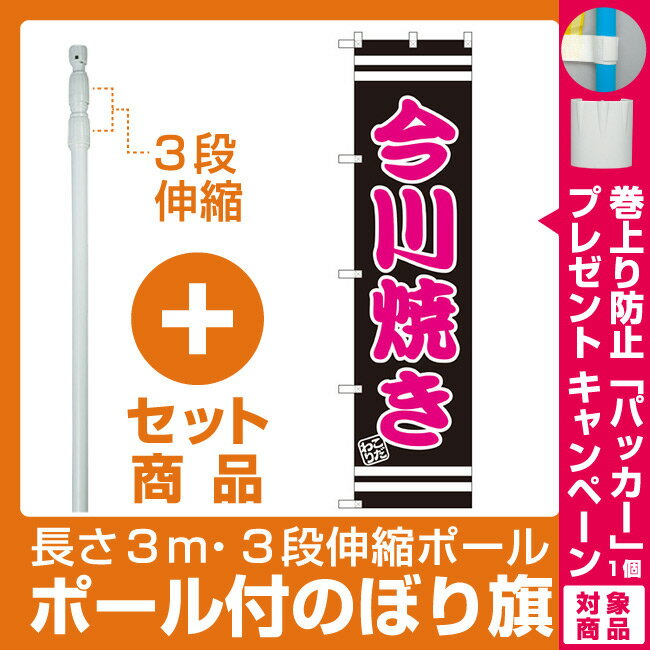 【プレゼント付】【セット商品】3m・3段伸縮のぼりポール(竿)付 スマートのぼり旗 今川焼き (SNB-2666)